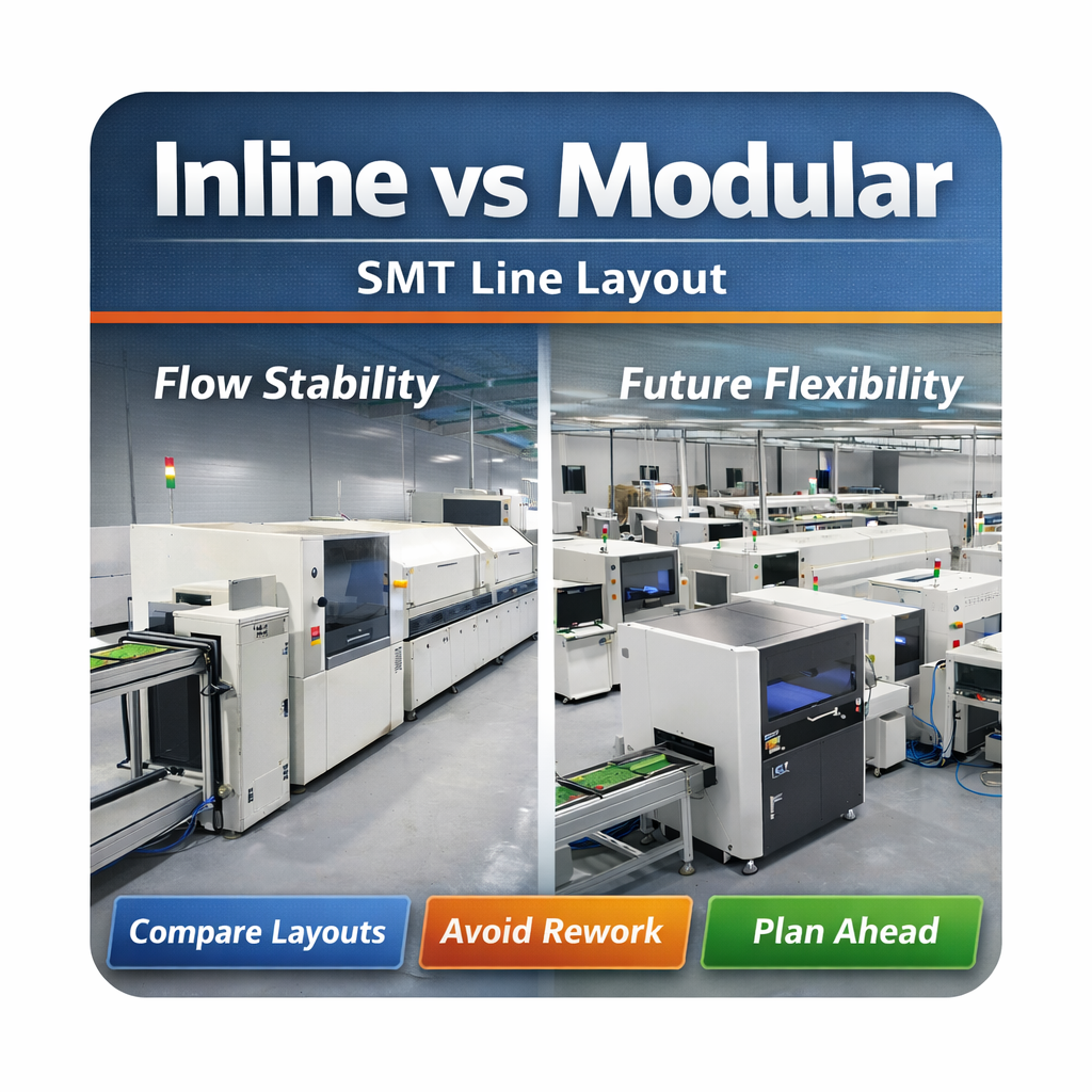 Az inline és a moduláris SMT vonalelrendezés közötti választás tehát nem alapterület-hatékonyság kérdése. Ez egy hosszú távú gyártási stratégia, amely közvetlenül befolyásolja az anyagáramlás stabilitását, az átállási rugalmasságot, a rendszer rugalmasságát és a jövőbeni bővítés valódi költségeit.
