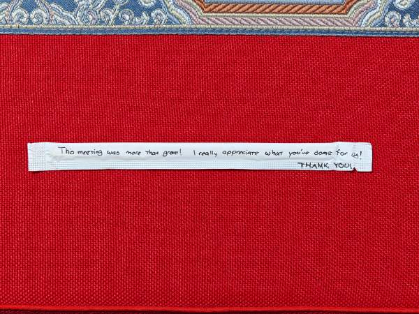 A találkozót nemcsak a produktív kommunikáció tette igazán különlegessé, hanem az ügyfél szívből jövő gesztusa is. A megbeszélés után az ügyfél egy kézzel írott feljegyzést hagyott ránk – váratlanul egy szívószál papírcsomagolására. Az üzenet így szólt: ' Ez a találkozó több mint nagyszerű volt! Nagyon hálás vagyok, amit értünk tett! Köszönjük.'